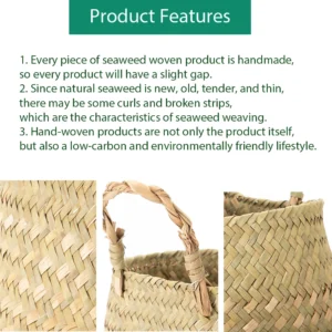 Fabriqué à partir d’herbier marin, ce panier cache-pot présente une texture unique et naturelle qui ajoute une touche organique à votre décoration intérieure. Les tons neutres et les motifs tissés à la main s’intègrent parfaitement dans tous les styles de décoration, du bohème au moderne, en passant par le rustique.