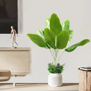 Notre collection comprend une variété d’arbres artificiels, des palmiers majestueux aux figuiers luxuriants, en passant par les bananiers et les ficus imposants. Que vous cherchiez à créer une oasis tropicale dans votre salon, à ajouter une touche de nature à votre bureau, ou à embellir votre patio ou votre jardin, notre large gamme d’arbres artificiels offre des options pour tous les goûts et tous les styles de décoration.